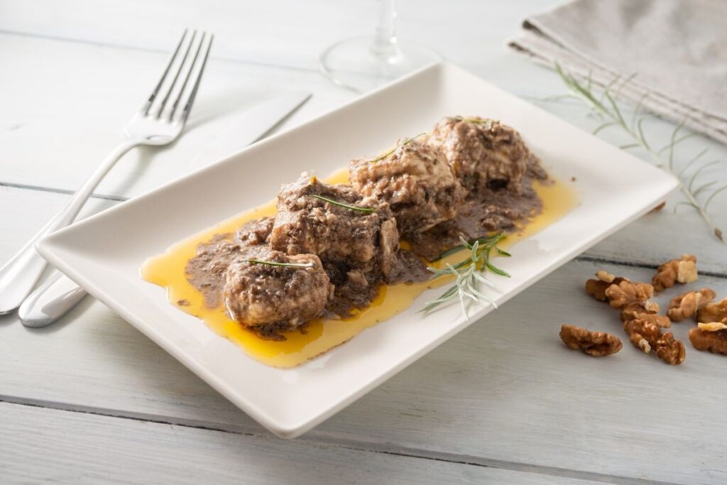 - La Marinatura (la Maturazione): È la fase cruciale. La terrina, coperta, deve riposare in frigorifero per almeno 24-48 ore. In questo lasso di tempo avviene la magia: l’aceto della salsa penetra delicatamente nelle carni del pesce, “cuocendolo” chimicamente (carpione), mentre il sapore delle noci e delle erbe si fonde con quello del mare. I sapori si arrotondano, si addomesticano, diventano una cosa sola.