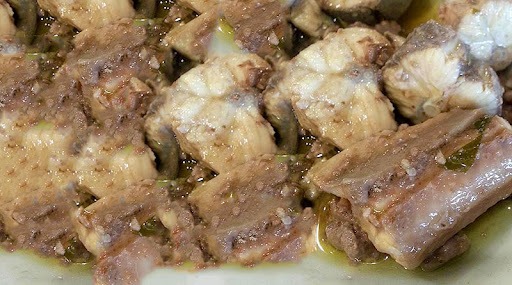 - Il Pesce: Oggi si usa prevalentemente il gattuccio (spellato e tagliato a tranci), ma tradizionalmente si potevano usare anche la mòllera (razza) o lo sàrdanu (palombo). Il pesce deve essere di freschissimo, sodo e compatto.