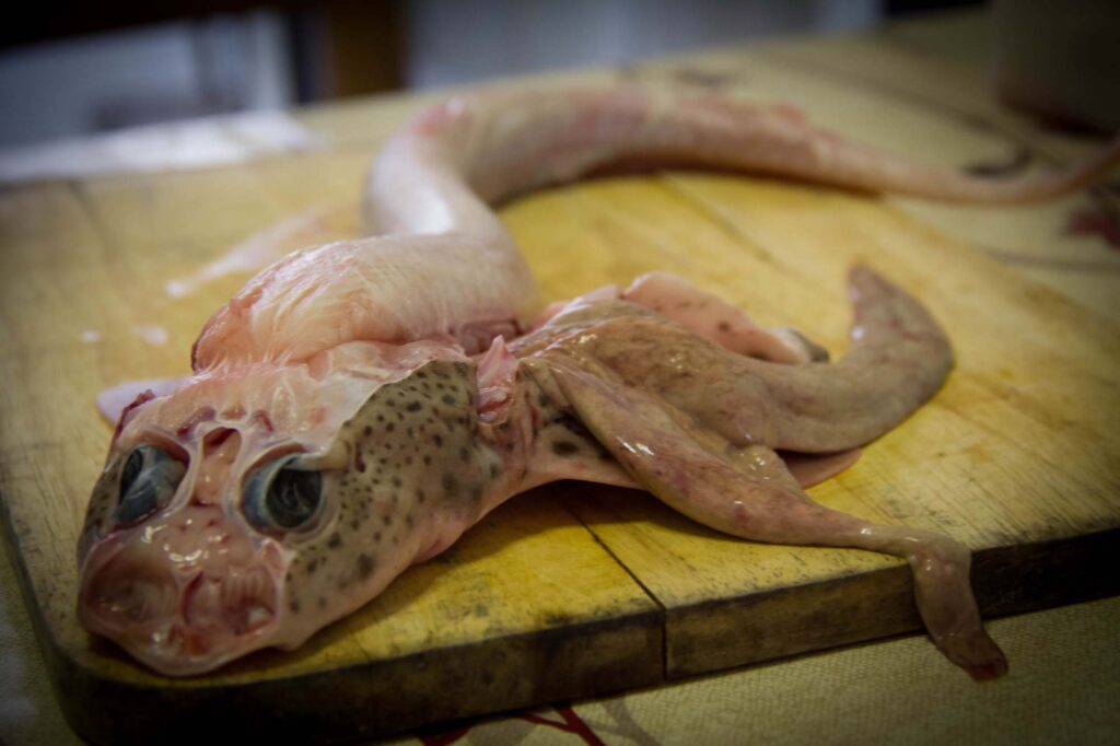 - Nobilitare il “pesce povero”: La protagonista originale non è un pesce pregiato, ma il “gattuccio” (mustélus in latino, mazzamèdu in cagliaritano), uno squaletto di fondale dalle carni sode ma considerato di scarso valore. La genialità della Burrida sta proprio nella capacità di trasformare questo umile pesce di scoglio in un piatto ricco e celebrato.