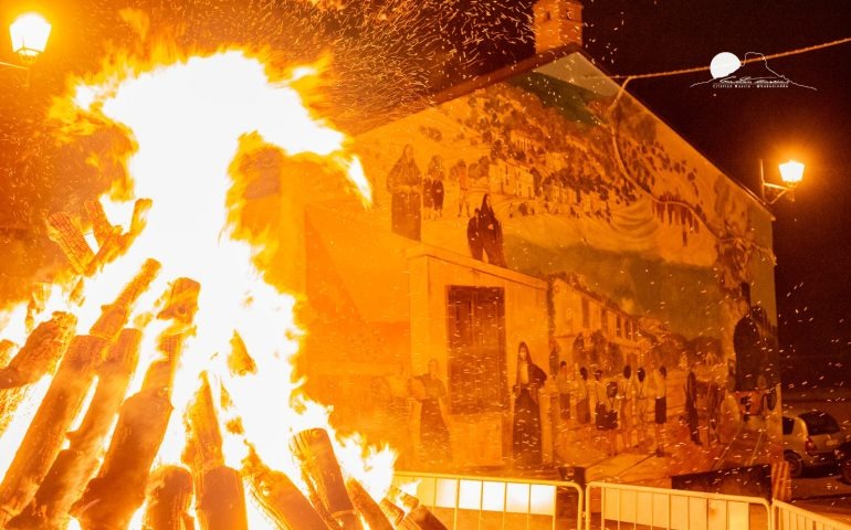 Mamoiada: Qui la preparazione del falò, “Su Foghidone”, è un rito in sé. Gli uomini del paese raccolgono la legna per giorni, costruendo una grande piramide. La vigilia del 16, dopo la benedizione degli animali, si da fuoco alla struttura. Le fiamme altissime illuminano i volti dei Mamuthones, che spesso compaiono in una prima, suggestiva processione notturna. È l’accensione simbolica del Carnevale Barbaricino.