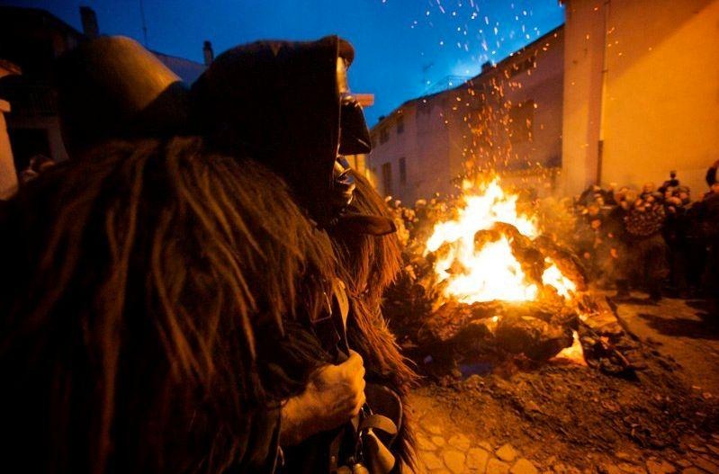 Tutto comincia con i falò, “is foghidonis”, che la notte del 16 gennaio illuminano a giorno le piazze dei paesi barbaricini. Le fiamme di Sant’Antonio, santo protettore degli animali e del fuoco purificatore, non servono solo a scaldarsi. Simbolicamente, bruciano il vecchio, puliscono l’aria e, soprattutto, “risvegliano” le maschere dal loro sonno pietrificato. È come se il calore di quelle fiamme sciogliesse il ghiaccio del tempo, permettendo agli spiriti dell’inverno e della fertilità di tornare a camminare tra gli uomini.