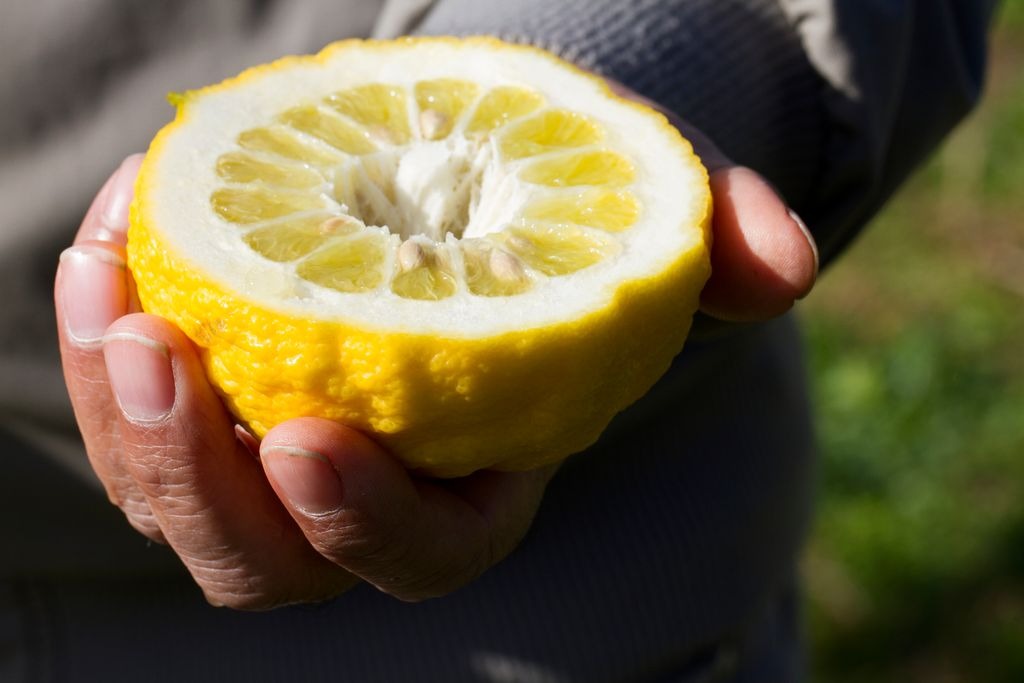 C’è un agrume, in Sardegna, che sembra uscito da un mondo fantastico. La sua scorza è spessa e rugosa come la pelle di un antico drago, le sue dimensioni possono raggiungere i 70 centimetri di circonferenza e il suo peso può sfiorare i 700 grammi. Si chiama sa pompia, e cresce solo in una piccola area della Sardegna centro-orientale, tra i comuni di Siniscola, Posada, Torpè e Orosei.