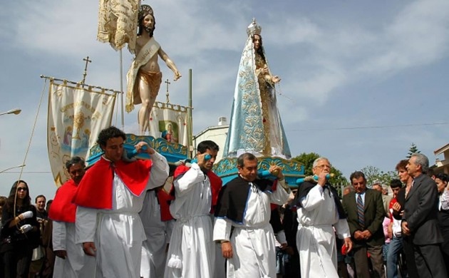- Oliena (Nuoro): Qui S’Incontru è uno dei più partecipati e sentiti dell’isola, con i cacciatori che sparano a salve per annunciare la Resurrezione .