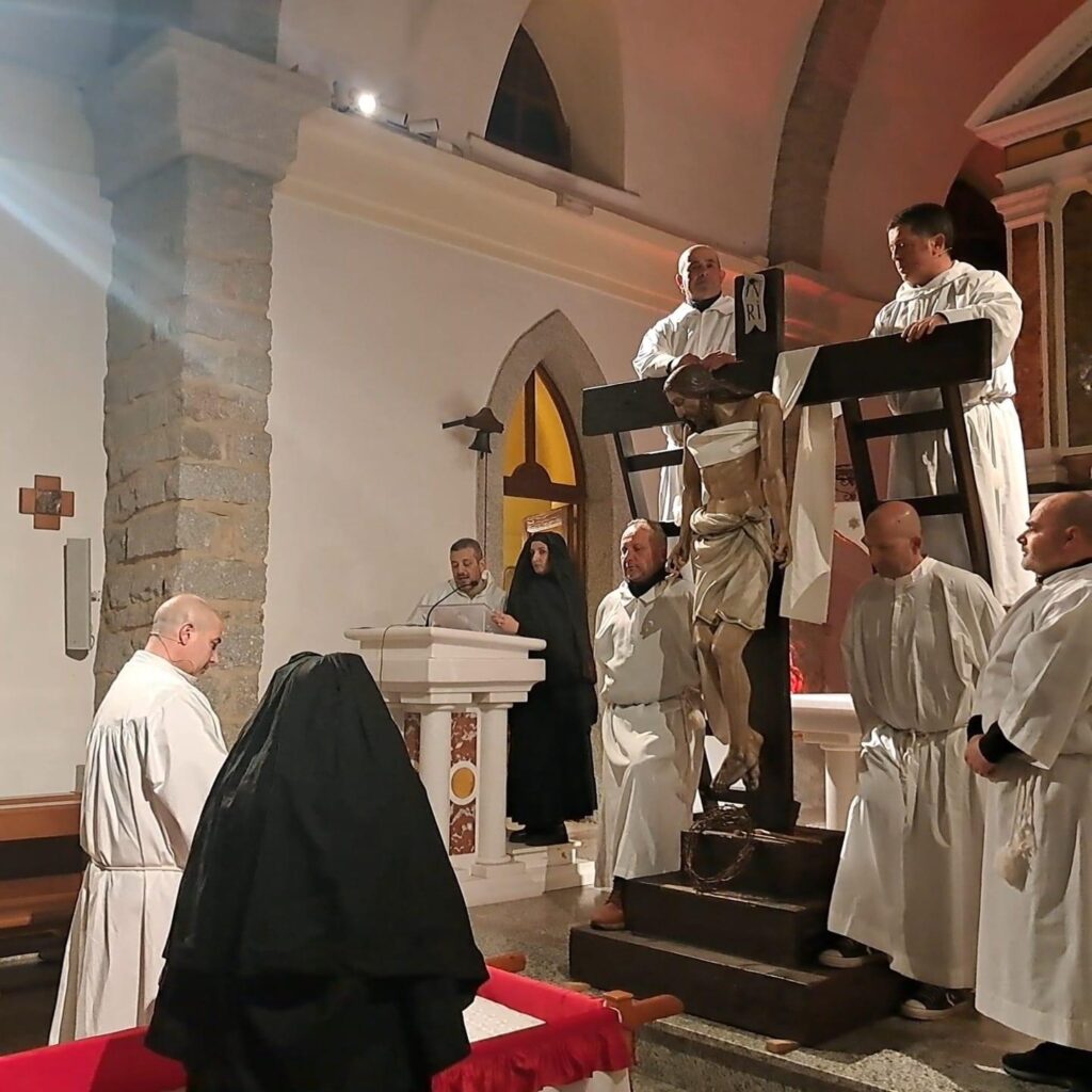 Se il lunedì è suggestione, il Venerdì Santo (Cenabara Santa) è dramma puro. Il momento clou è S’Iscravamentu, la deposizione di Cristo dalla croce .